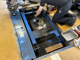 リフトを分解した姿は、普段ではなかなか見られない貴重な光景です。