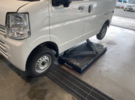 今回は整備士が点検後、お客様実際に工場に入っていただいて立ち会い説明をし、最後検査ラインを通しました